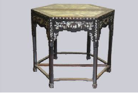 清紫檀木嵌大理石螺钿花饰六角桌